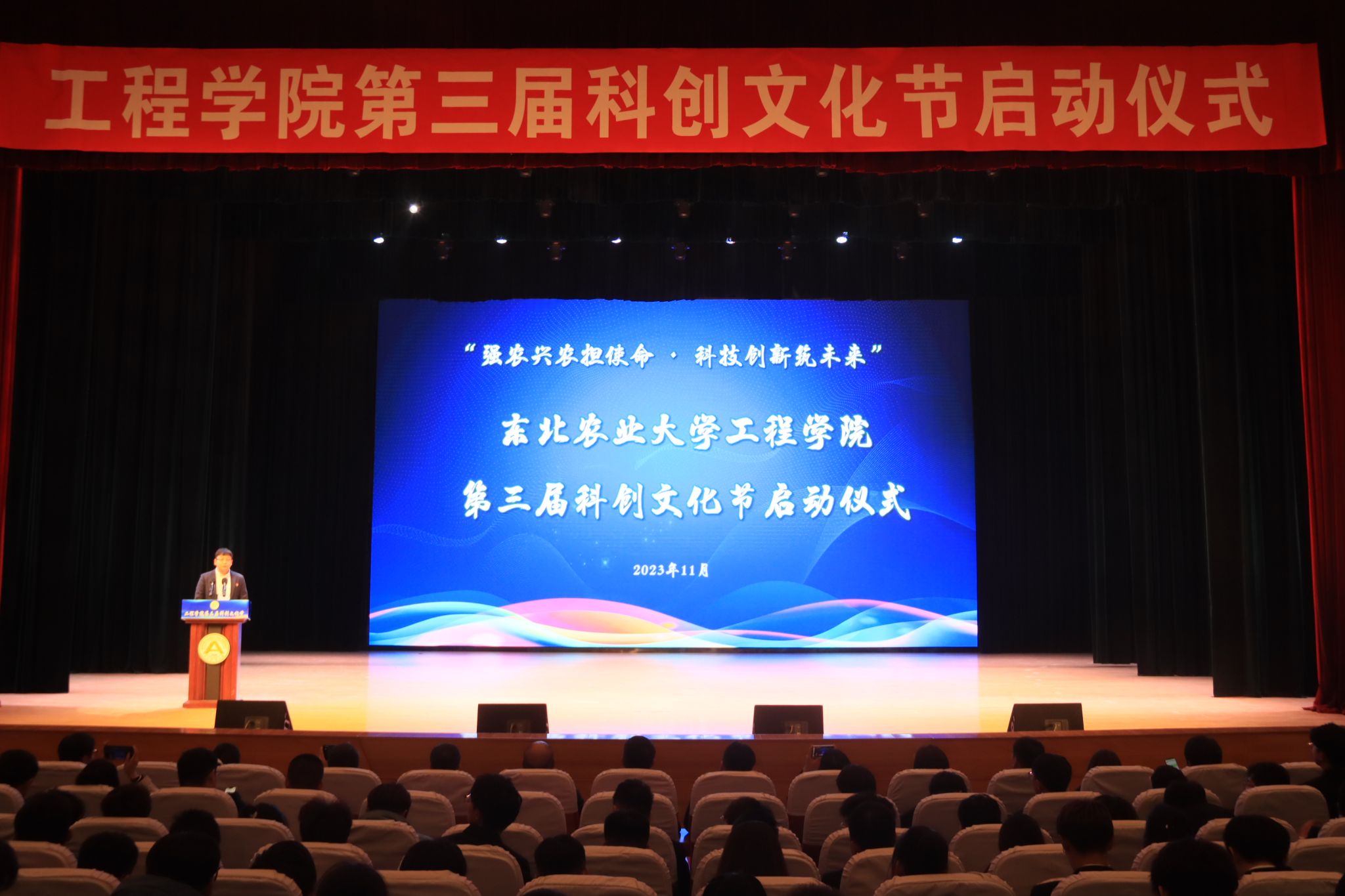 为培养大学生科研精神,营造良好校园学术氛围,积极探索创新创业拔尖人才培养新模式,推进大学生素质教育工作向纵深发展。11月9日,必威betway西汉姆联在音乐厅举办第三届科创文化节启动仪式,会议主题为“强农兴农担使命,科技创新筑未来”。校团委书记李卡,学院党委书记黄步海,行政负责人周文琪,校团委副书记焦文静,学院副院长臧宏、王立军、王金峰,学院教师代表、全体辅导员、2022及2023级全体学生参加启动仪式。学院党委副书记孙涛主持启动仪式。