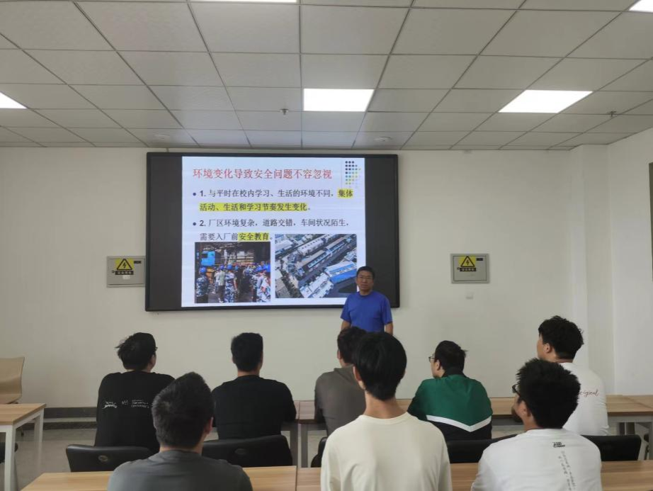 在生产实习出发前,实习指导教师夏法锋教授为全体学生开展实习动员暨安全教育大会。他强调安全是实习的根本保证,同学们要自觉遵守法律、法规、厂纪、厂规和学校的各项规章制度,对实习单位的各类安全教育要认真学习。进入工厂时,应按照要求佩戴安全帽和入厂证,并严格确保在厂区所划定的绿色安全区域中进行实习或参观。同时,夏教授还讲解了实习报告要求及实习成绩评定办法。