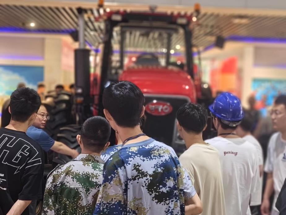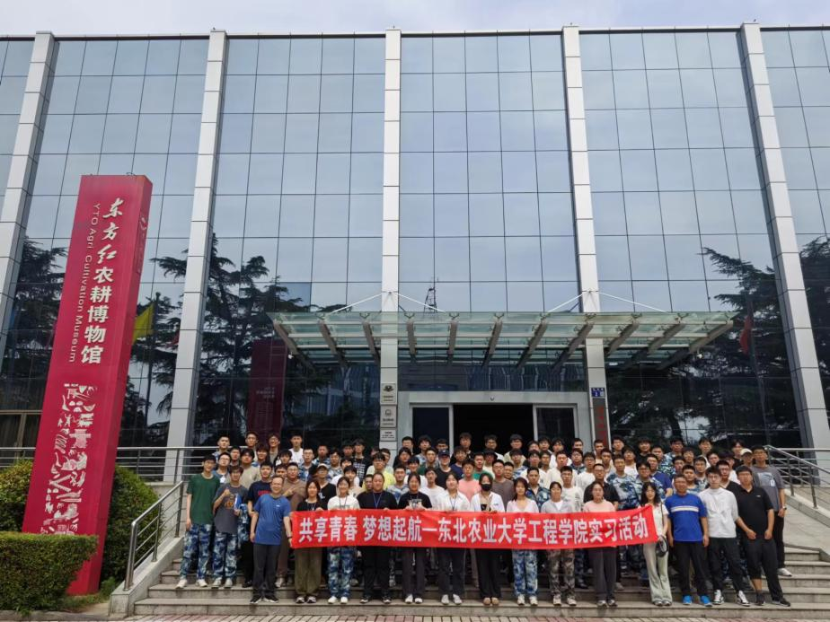 本次实习的第一站是参观中国一拖东方红农耕博物馆。学生们进入博物馆后,映入眼帘的是习近平总书记“把中国人的饭碗牢牢端在自己手中”的指示。博物馆陈列了商代的石铧犁、战国时期的铁犁以及唐代的曲辕犁,标志着我国传统农耕发展成熟。直到新中国成立之初,为改变农业落后的面貌,1953年1月,中央决定筹建第一个大型拖拉机制造厂,并提出年产2万台的设计纲领。随后,在苏俄专家的帮助下,中国一拖员工攻坚克难掌握技术,完成了新中国农机工业的重要奠基。自中国一拖诞生之日起,党和国家领导人给予很多的关怀和嘱托,这激励着中国一拖人勇于奉献、开拓进取,为中国农机现代化增砖添瓦。