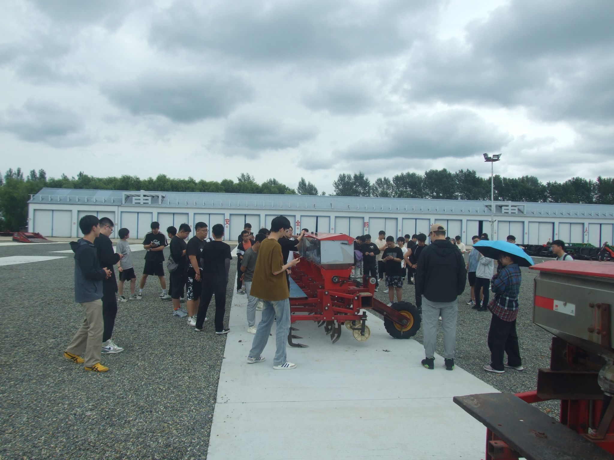 在友谊农场第一分厂(以旱田生产为主)了解到了拖拉机、耕整机、播种机、喷洒机、收割机、翻晒机等;在第十一分厂(以水田生产为主)见识到了水田犁、四铧犁(新式三加一/新式四加一)、打浆机、刨地机、老式刨地机、四驱插秧机、手扶式插秧机、各种收获机具、直收全喂入式收获机、水田用拖拉机、割晒机、平地机、拾禾器、各种割台等。在飞机场目睹了飞机喷药全过程。通过参观北大荒农机博览园,让学生们见到了1954年以来,友谊农场使用过的各类农机具,让学生们真正的看到了农业机械化的发展和演变过程,了解了农业机械向智能化、自动化、绿色环保、大数据和云计算,实现人机协同方向发展。