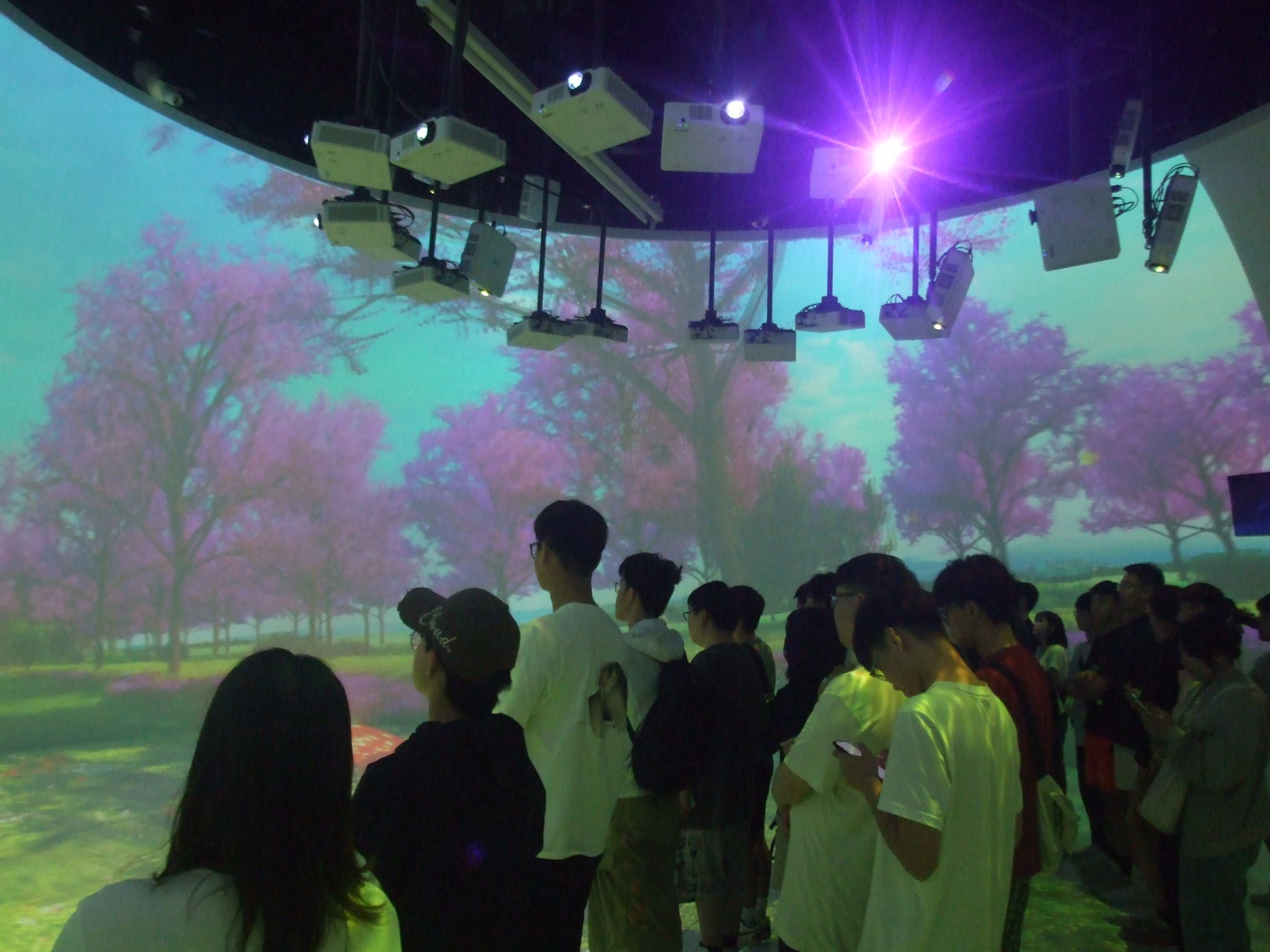 在黑土地科技实验室,了解了当地的黑土分布及黑土保护情况,见到了黑土地土壤检测的先进设备和技术;现场通过立体投影技术,让学生们沉浸式感受了友谊农场一年四季的农作,并以第一视角体验农业机械作业过程,使学生们对农业机械作业环境有了更深入的了解和认识。