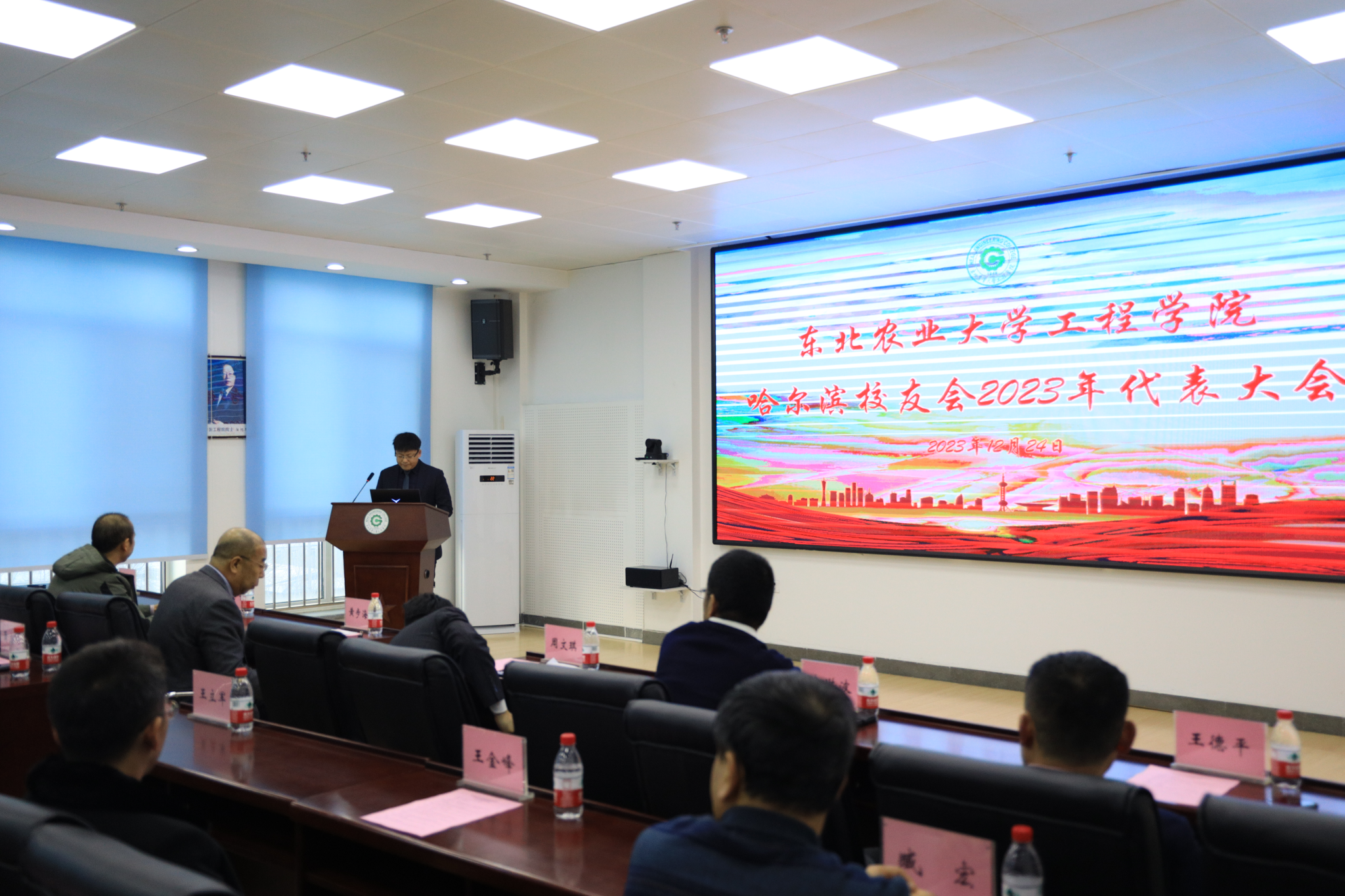 学院党委书记黄步海在致辞中向哈尔滨校友会2023年会员代表大会的召开表示热烈的祝贺,对学院哈尔滨校友会成立以来取得的成绩给予充分肯定,对在哈校友们长期以来对母校和学院的高度关注和倾力支持表示感谢。他指出,校友是学校和学院最可宝贵的资源和财富,母校和学院赋予了工程学子足以享用一生的资本和人生旅途当中最美好的记忆;校友会对母校和学院建设发展的作用至关重要。他介绍了学院近年来在建设发展中取得的丰硕成果,并寄语与会校友代表“六个永远”。一是永远记住在必威西汉姆联特别是在必威betway西汉姆联大学生活所度过的青春似火、激情燃烧的岁月;二是永远记住曾经拥有的朝夕相处的同窗谊、诲人不倦的师生情;三是永远记住是母校和学院培养了大家,大家永远是东农人、工程人;四是永远为母校和学院感到光荣、骄傲和自豪;五是永远时刻关心、关注母校和学院的建设发展,永远为母校和学院喝彩;六是永远奋发图强,在今后的工作、生活中为母校和学院增光添彩!