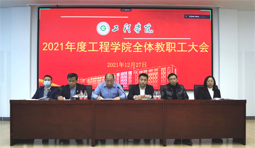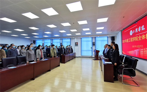 12月27日下午,必威betway西汉姆联在工程实训中心522会议室召开2021年度教职工大会,学院领导班子、全体教职工参加会议。校工会副主席杨石穿应邀出席大会。会议由院党委书记黄步海主持。会议在庄严的国歌声中拉开帷幕。