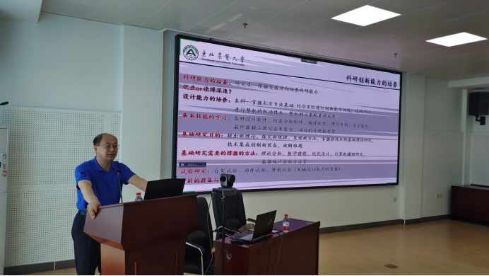 报告中,吕教授首先系统讲述了科研创新项目申报的一些基础性知识和应注意的一些问题,并就研究生在科研创新上应具备的基本能力和素质提出了自己的观点和看法,他强调:论文、专利是知识创新的成果体现,但坚决不等于创新,创新的真正价值在于研究成果能够在实践中获得验证和推广。随后,他又介绍了本团队在马铃薯种植、田间管理、收获机械化装备所做出的的努力和获得的科研成果,他强调:这些成果是他及团队成员用27年的坚守换来的,并告诫与会研究生在科研道路上没有捷径可走,只有在尊重科学、遵循规律的前提下,脚踏实地地执着前行才能获得成功。报告最后,吕教授介绍了马铃薯种植、田间管理和收获机械化装备的关键部件与工作原理,以及团队在研究过程中遇到各种各样的技术难题时所采取的解决思路和办法。他叮嘱研究生要明白科研与诸多事情都一样,机会留给有准备的人,只有做到未雨绸缪才能获得先机。
