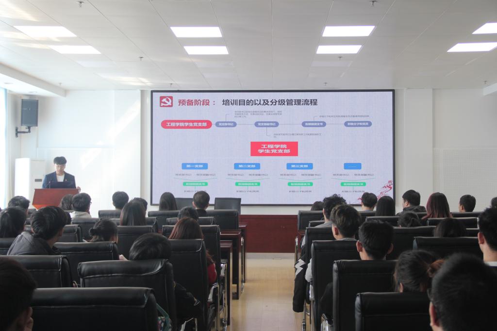 学生党支部副书记许朝阳从发展流程细节出发,对申请入党、入党积极分子的确定和培养、发展对象的确定和考察、预备党员的接收、预备党员的教育考察和转正等内容进行了详细的培训。