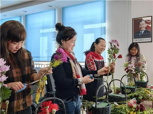 本次活动得到了学院领导的大力支持,学院工会委员精心挑选购置了多种鲜花植物和花盆、花泥等材料。活动开始前,臧宏代表学院领导班子表达了对学院女教职工的问候和祝福,鼓励全体女教职工在各自的岗位上做出不平凡的成绩,与学院同发展、共进步,以饱满的热情、执着的追求为一流学院建设做出贡献。