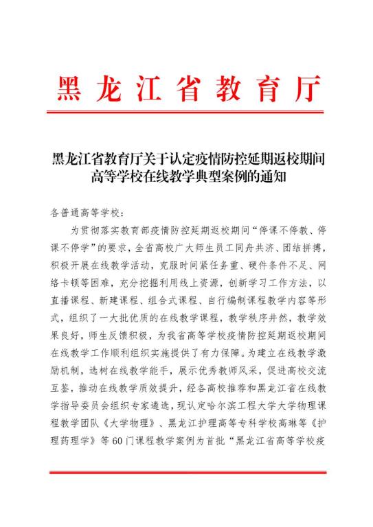我院教学团队在线课程荣获疫情防控在线教学典型案例