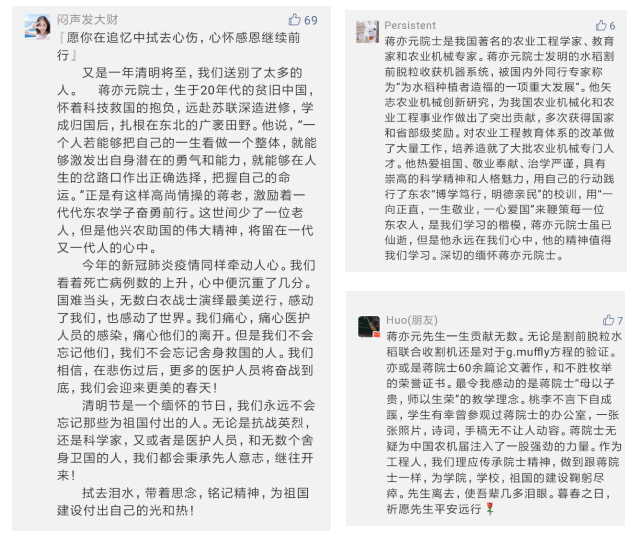 4.3日,我院在线上举行了对蒋院士的缅怀追思活动,缅怀蒋院士的伟大成就,更是缅怀蒋院士的学习与钻研精神。同学们通过这次活动,对蒋院士的生平有了更深切的了解,对蒋院士的研究精神有了深彻的领悟。这种怀念与追思是我们对蒋院士的崇高敬意,更是对我们同学前行路上的鼓励。为了更好的贯彻蒋院士的科学精神,我院青站开展了线上祭祀活动。同学们积极留言悼念蒋院士,深刻的表达了同学们对蒋院士的缅怀追忆之情。