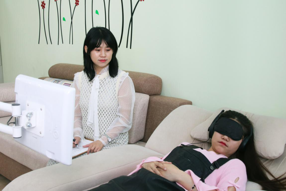 音乐放松室是主要为来访者提供各种放松训练条件,帮助来访者缓解各种压力、情绪的场地。放松室配备有音乐减压治疗系统,运用音乐特有的生理、心理效应,使心理咨询者进行音乐体验,达到缓解和消除焦虑、紧张等不良情绪,减缓心理障碍,恢复或增进心理健康。