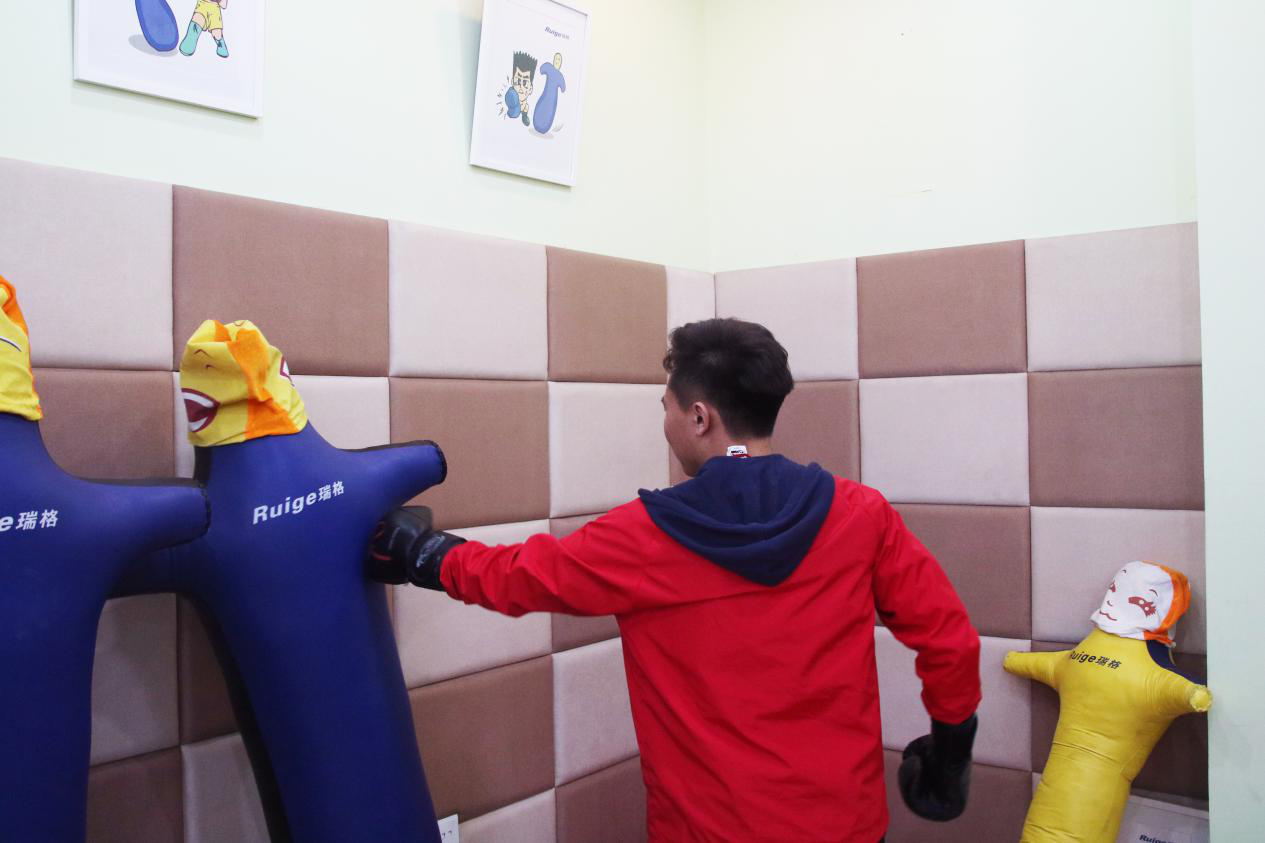 情绪宣泄室是用于排除不良情绪,促进心理健康的一个重要功能室,是心理咨询室的重要一部分。室内配备的宣泄器材有宣泄人、宣泄棒、拳击手套,智能宣泄仪等。来访者可以借助这些设备将心理压力在可控的范围内宣泄出来,是压力释放的有效方法。