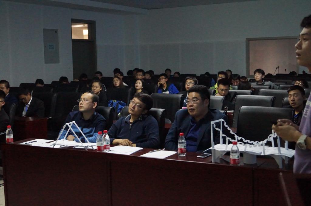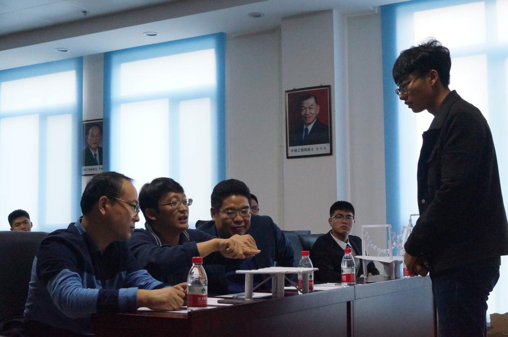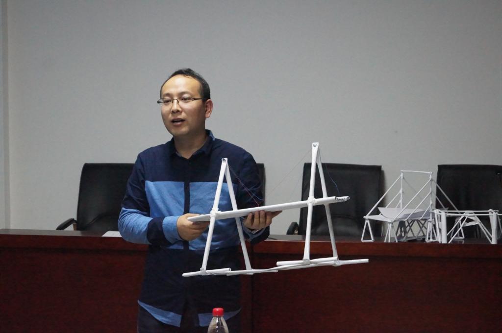 在本次复赛中,每个参赛小组由小组代表上台通过PPT展示作品图片及其构造,并且结合已完成的作品模型解说其设计原理、特性与现实原型。随后由老师们对复赛作品进行现场点评,他们从纸桥的承载能力、外形特征、力学原理等多个方面对于作品进行了分析与评价,权老师还有针对性地指出了上交作品的优、劣势,并给出技术上的指导与改进意见。