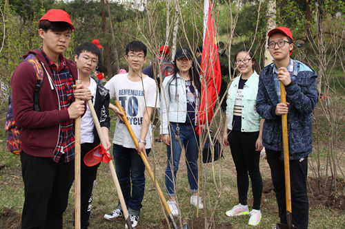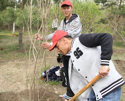 在植树造林现场,青年师生挥锨整地,挖坑植苗,提水浇灌,点绿播翠,到处是一派繁忙的植树景象。虽然当天刮着大风,大家又热又累,但想到能为城市绿化做贡献,美化自己的家园,大家都觉得老有所值。有些青年教师还特意带上自己的孩子,现场躬亲示范,目的就是为了教育孩子从小养成环保理念,爱护家园、美化环境,让绿色环保理念传承下去。