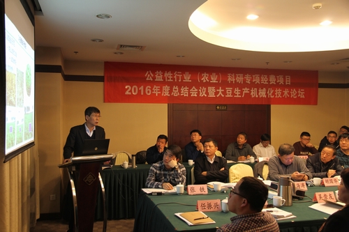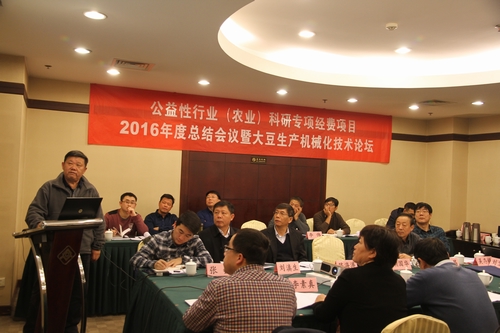 会上,11位研究任务负责专家就2016年的研究工作内容及取得的阶段性成果作了详细的专题学术报告,同时汇报了2017年研究计划及具体实施方案。项目顾问专家和项目执行专家组成员对每一研究任务的进展、研究思路及方法、成果进行点评,并针对2017年实施方案提出具体建议。与会专家就玉米大豆轮作条件下耕整地制度、茬地耕整地方式麦(玉米)茬地免耕覆秸精密播种技术体系、东北及黄淮海地区大豆机械化生产技术模式等具体技术问题、东北及黄淮海地区大豆生产实践热点及难点问题进行了深入交流和热烈讨论。