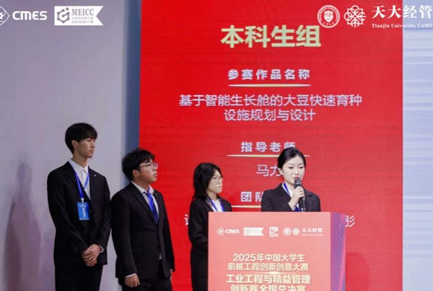 10月25日,2025年中国大学生机械工程创新创意大赛工业工程与精益管理创新赛总决赛在天津大学成功举行。全国总决赛由方案汇报和评委提问两个部分组成,经过现场激烈的角逐,我校代表队题为《基于智能生长舱的大豆快速育种设施规划与设计》的作品,斩获本科生组国家级二等奖。
