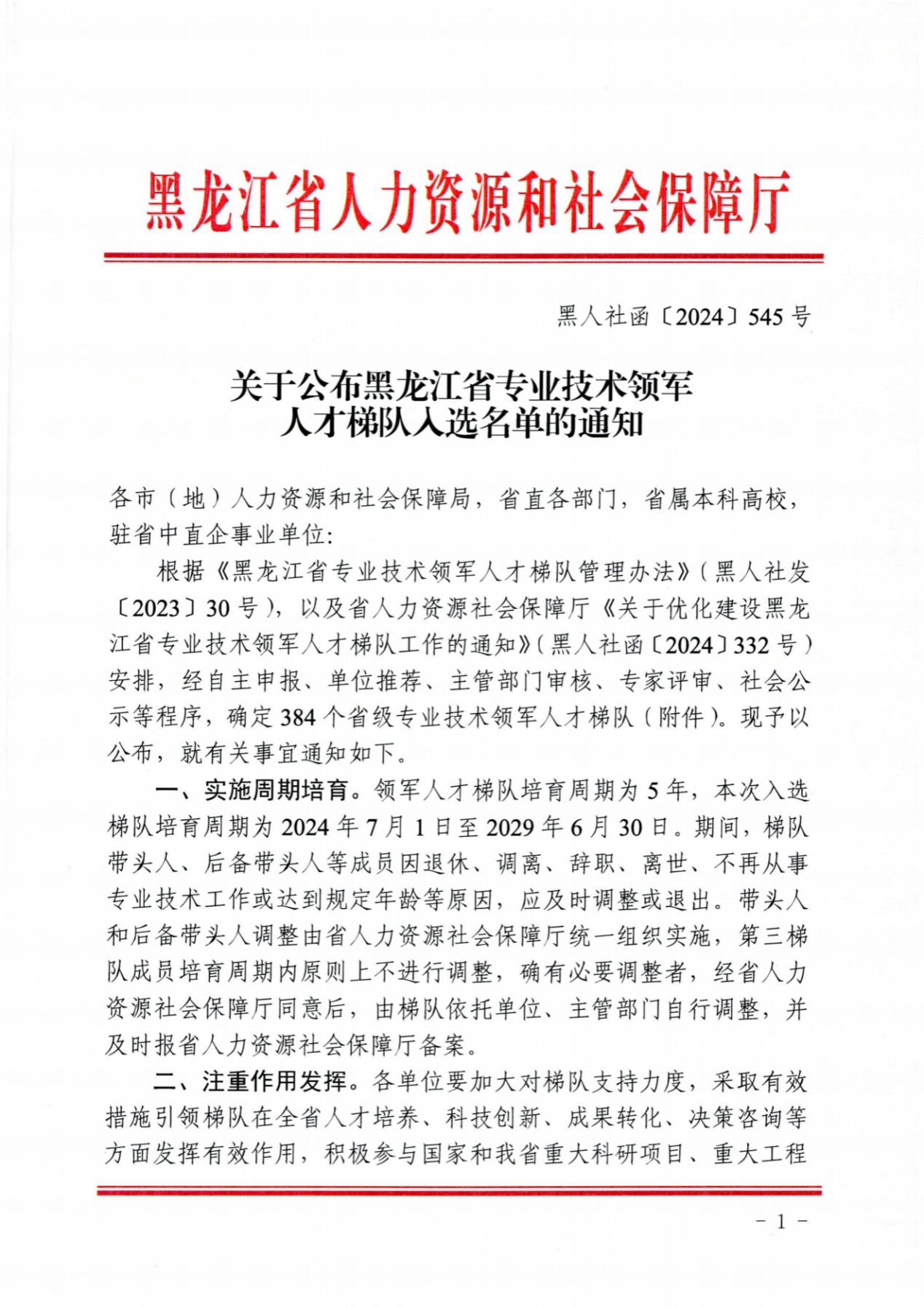 黑龙江省专业技术领军人才梯队是培养、吸引、使用、储备高层次专业技术人才的专项工程,聚焦基础应用研究、重点产业领域、特色专业学科和关键核心技术,通过年度新建、梯次培育、动态调整、持续培养等方式,旨在培养一批自主创新能力强、发展潜力大、专业贡献突出、引领作用显著、集聚效应明显的高层次人才和梯队,为新时代龙江全面振兴全方位振兴提供人才支撑。一直以来,必威betway西汉姆联高度重视学科梯队建设,在对原有学科梯队进行认真梳理,合理布局、优化资源、突出特色、强化优势,形成良好的学科生态,推动学科更好更快发展,打造出省“双一流”优势特色学科。