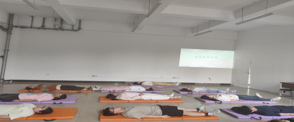 活动尾声,同学们在姚雪老师温柔清晰的引导下,进行“正念身体扫描”。注意力从脚趾轻柔移动至头顶,不带评判地觉察身体的每一处感觉,释放深层压力,培养对身体的关爱与接纳。