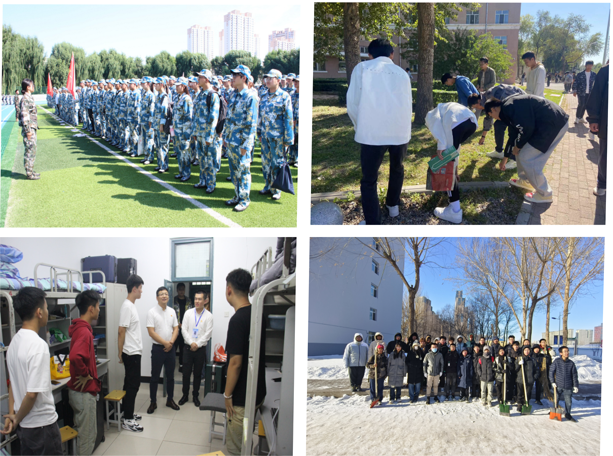 紧扣“院士精神”中勤于思践的实践理念,培养学生“崇尚劳动、热爱劳动”的高尚品质。深入开展新生军训活动,培育新生的国防观念和国家安全意识,增强新生集体主义观念、组织纪律观念和团队协作精神,培养艰苦奋斗的作风,磨练意志,强健体魄,帮助他们以健康的生活习惯和良好的精神状态投入大学生活。新生辅导员每天进行宿舍卫生检查活动,引导新生养成良好的卫生习惯,打造干净、舒适的宿舍环境。开展“美化校园,劳动最美”为主题的劳动教育实践活动,引导新生继续弘扬劳动精神,在劳动中提升综合素质,争做德、智、体、美、劳全面发展的新时代大学生。