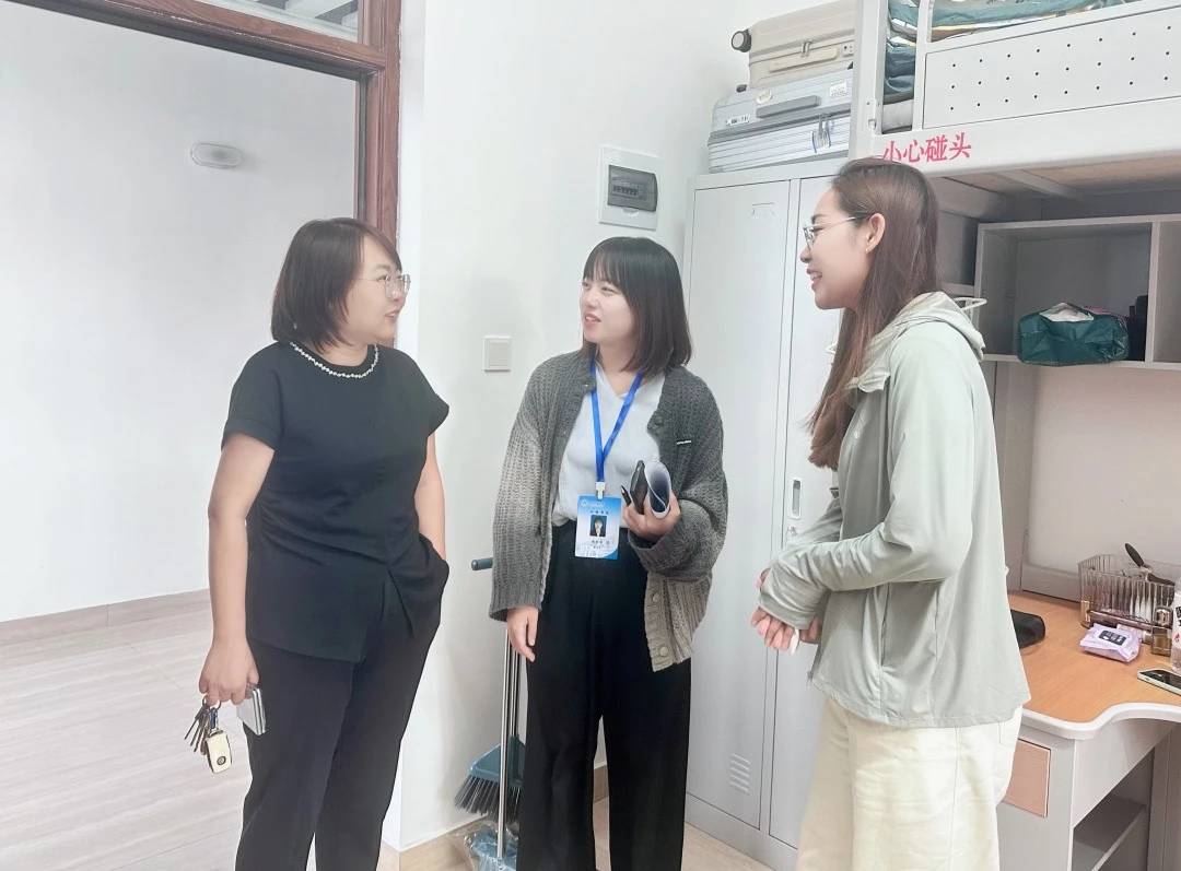 除新工程楼迎新场地外,当日,必威betway西汉姆联党委副书记孙涛,副处级辅导员孟繁美老师、副处级辅导员杨秀坤老师、2024级新生辅导员陈红宇老师深入北九、北十二和新国交新生公寓,对2024级研究生新生进行走访慰问。过程中,几位老师对新生进行亲切关照,叮嘱他们要在生活和学习中自立自强,不骄不躁,开启人生新篇章。