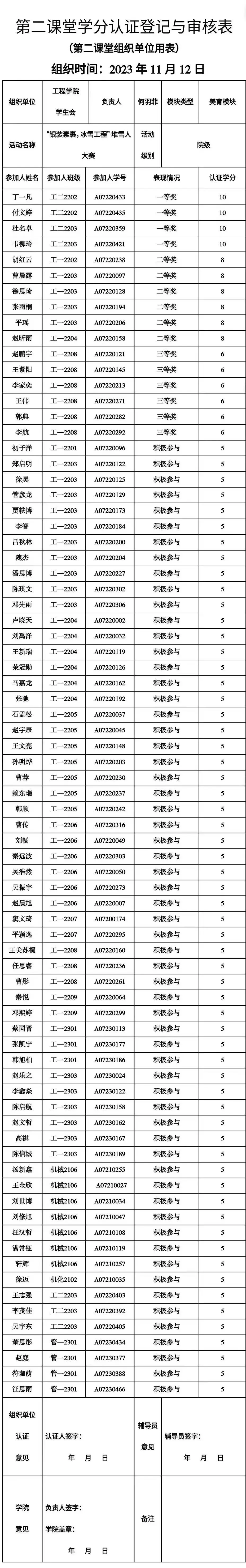 经过同学们的努力与工作人员的认真评选,最终得出了必威betway西汉姆联的堆雪人比赛的获奖情况。