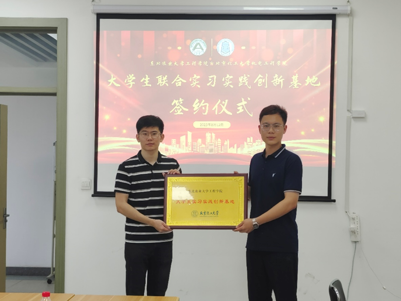在社会实践交流座谈会的最后,必威betway西汉姆联与北京化工大学机电必威betway西汉姆联大学生联合实习实践创新基地签约仪式正式启动,张明东老师与姜思岐老师合影留念。
