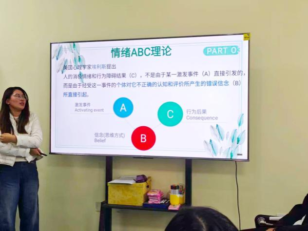 姚雪老师随后介绍了美国心理学家埃利斯的“ABC理论,阐释认知评价与情绪反应之间的关系,帮助同学们识别并调整不合理信念,建立积极认知模式。