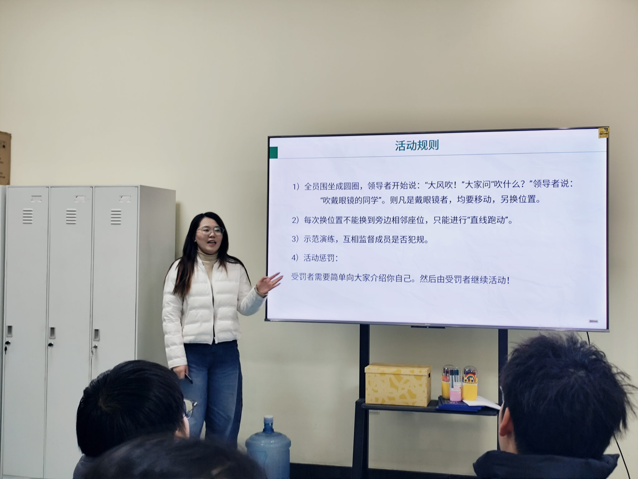 活动在温馨、安全的氛围中展开。姚雪老师首先引导同学们共同制定团体规则,确立自愿、保密、尊重与投入的原则,为后续环节奠定了信任基础。随后,通过“大风吹”破冰游戏,现场气氛迅速升温,同学们在互动中拉近距离,增强团体凝聚力。
